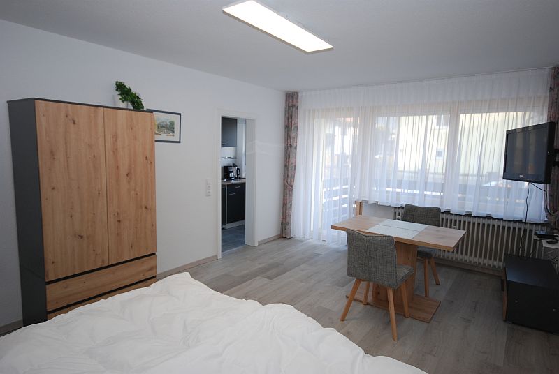 Bei den Ein-Raum-Wohnungen handelt sich um abgeschlossene Wohnungen mit Wohn- und Schlafbereich in einem Raum. Die Küche ist entweder in einem separaten Küchenraum untergebrach oder im Flur integriert. Die Wohnungen bieten in der Regel Platz für 1 bis 2 Personen. In Ausnahmefällen steht noch eine dritte Schlafmöglichkeit zur Verfügung. Siehe hierzu die jeweilige Wohnungsbeschreibung.