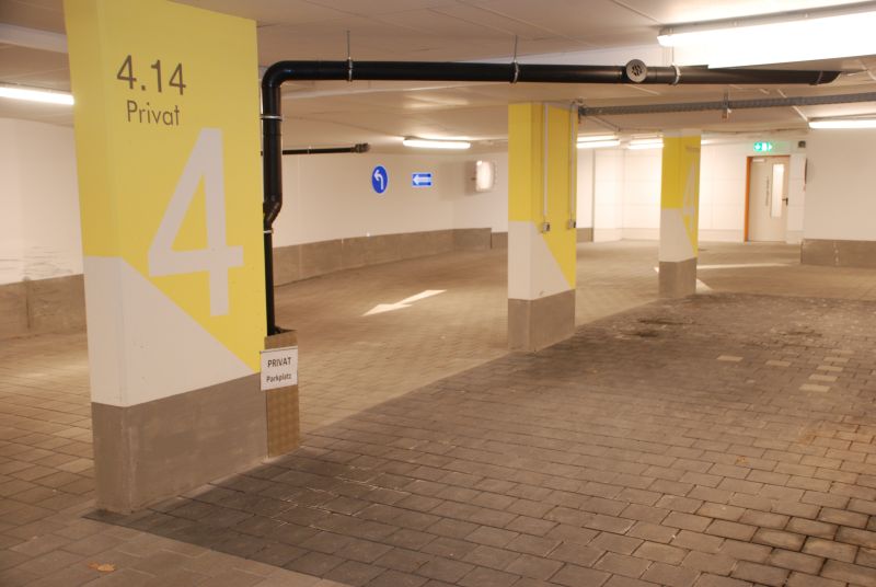Tiefgaragenplatz 8 €/Nacht.