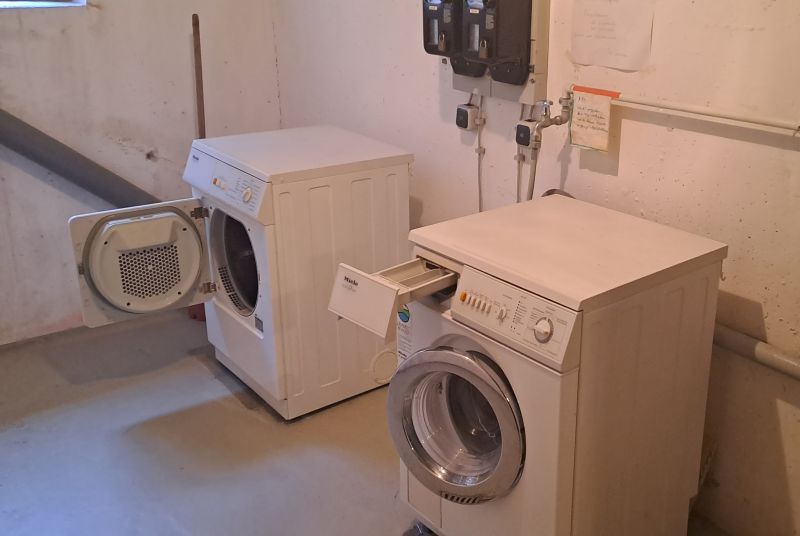Im Keller befindet sich eine Waschmaschine sowie ein Wäschetrockner, der mit Münzen betrieben wird.